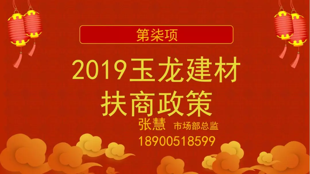 玉龙建材市场部总监张慧女士的发言把整场会议推向了最高潮。张总针对2018年经销商遇到的困难和瓶颈,结合玉龙建材自身的优势和长处,公布了2019年玉龙建材的四大扶商政策,为合作伙伴们提供了最大的支持和最坚强的后盾。